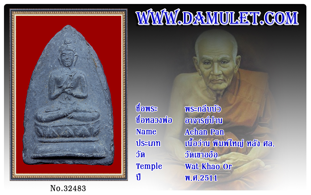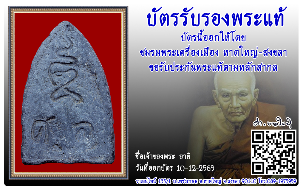 พระกลีบบัว อาจารย์ปาน วัดเขาออ้อ พ.ศ.2511 2563 10 ธ.ค. 2020 463 share tweet share ชื่อพระ : พระกลีบบัวชื่อหลวงพ่อ : อาจารย์ปานประเภท : เนื้อว่าน พิมพ์ใหญ่ หลัง ศล.วัด-ปี : วัดเขาออ้อ พ.ศ.2511รหัส : No.32483วันที่ออกบัตร : 10-12-2563ชื่อเจ้าของพระ : อายิ