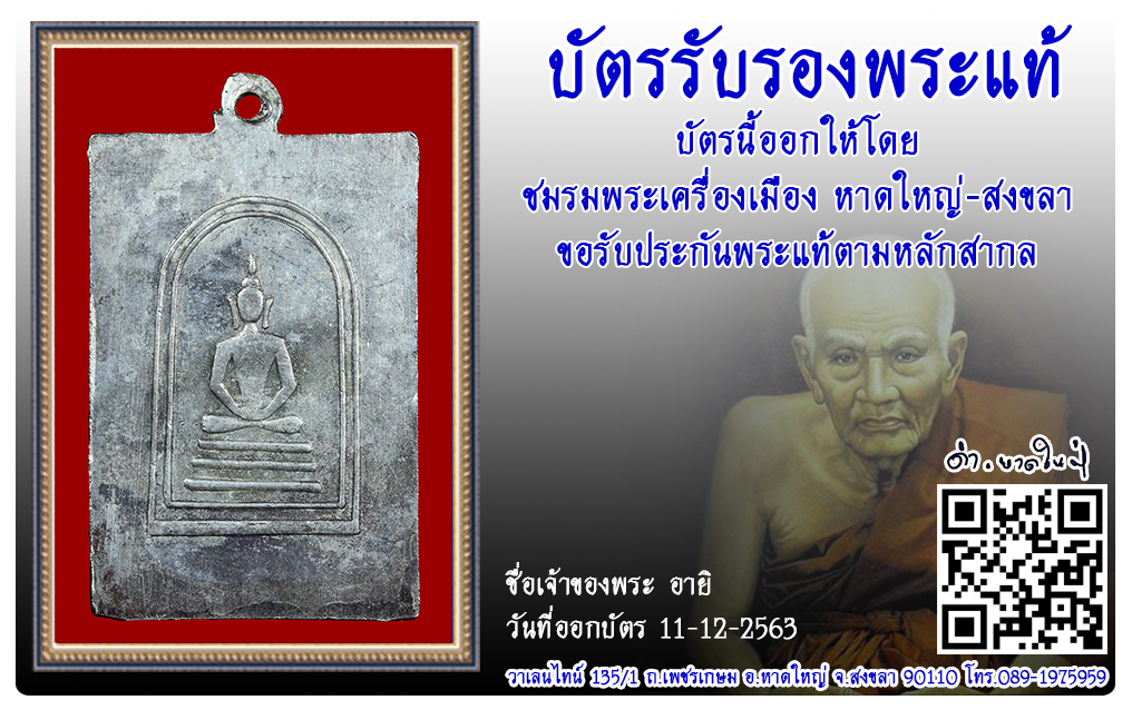 เหรียญหลวงพ่อทวดหนอน วัดเขามะรวด พ.ศ.2505 2563 11 ธ.ค. 2020 354 share tweet share ชื่อพระ : เหรียญหลวงพ่อทวดหนอนชื่อหลวงพ่อ :ประเภท : รุ่นแรก เนื้อทองแดงกะไหล่เงินวัด-ปี : วัดเขามะรวด พ.ศ.2505รหัส : No.32487วันที่ออกบัตร : 11-12-2563ชื่อเจ้าของพระ : อายิ
