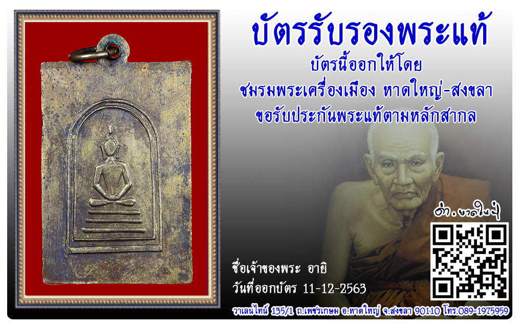 เหรียญหลวงพ่อทวดหนอน วัดเขามะรวด พ.ศ.2505 2563 11 ธ.ค. 2020 627 share tweet share ชื่อพระ : เหรียญหลวงพ่อทวดหนอนประเภท : รุ่นแรก เนื้อทองแดงกะไหล่ทองวัด-ปี :วัดเขามะรวด พ.ศ.2505รหัส : No.32488วันที่ออกบัตร : 11-12-2563ชื่อเจ้าของพระ : อายิ