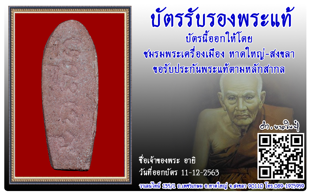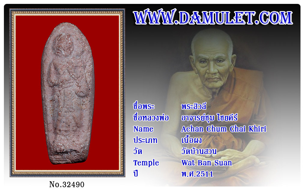 พระสิวลี วัดบ้านสวน พ.ศ.2511 2563 11 ธ.ค. 2020 296 share tweet share ชื่อพระ : พระสิวลีชื่อหลวงพ่อ : อาจารย์ชุม ไชยคีรีประเภท : เนื้อผงวัด-ปี : วัดบ้านสวน พ.ศ.2511รหัส : No.32490วันที่ออกบัตร : 11-12-2563ชื่อเจ้าของพระ : อายิ
