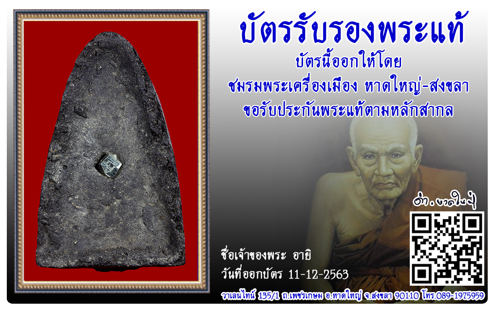 หลวงปู่ทวด หลวงพ่อแดง วัดศรีมหาโพธิ์ พ.ศ.2538 2563 11 ธ.ค. 2020 444 share tweet share ชื่อพระ : หลวงปู่ทวดชื่อหลวงพ่อ : หลวงพ่อแดงประเภท : เนื้อว่าน พิมพ์ใหญ่ รุ่น 5 แซ๊ะวัด-ปี : วัดศรีมหาโพธิ์ พ.ศ.2538รหัส : No.32500วันที่ออกบัตร : 11-12-2563ชื่อเจ้าของพระ : อายิ