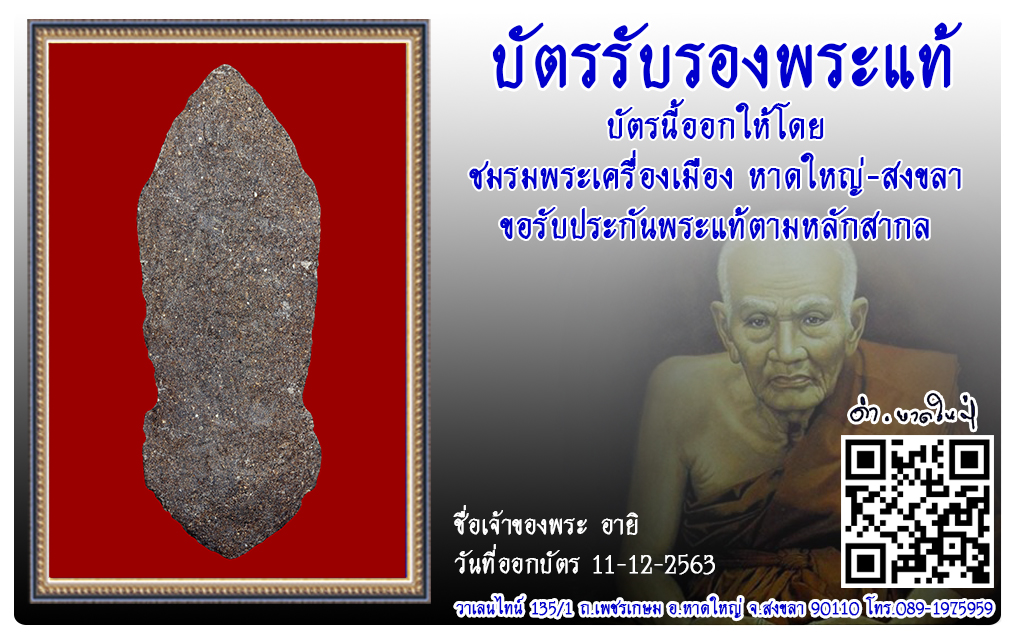 พระประจำวันพุธ พ่อท่านคล้าย วัดสวนขัน พ.ศ.2510 2563 11 ธ.ค. 2020 459 share tweet share ชื่อพระ : พระประจำวันพุธชื่อหลวงพ่อ : พ่อท่านคล้ายประเภท : เนื้อชานหมาก พิมพ์ใหญ่วัด-ปี : วัดสวนขัน พ.ศ.2510รหัส : No.32506วันที่ออกบัตร : 11-12-2563ชื่อเจ้าของพระ : อายิ