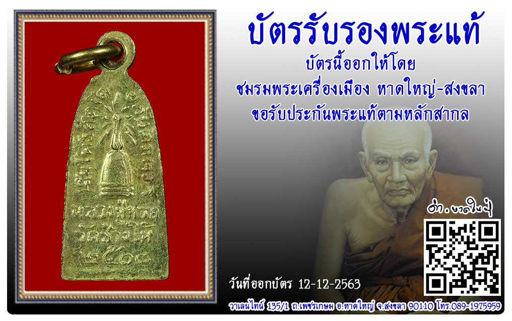 หลวงปู่ทวด วัดช้างให้ พ.ศ.2508 2563 12 ธ.ค. 2020 314 share tweet share ชื่อพระ : หลวงปู่ทวดประเภท : รุ่นทะเลซุง พิมพ์เล็กวัด-ปี : วัดช้างให้ พ.ศ.2508รหัส : No.32509วันที่ออกบัตร : 12-12-2563