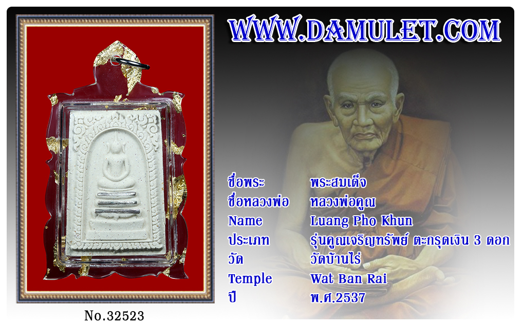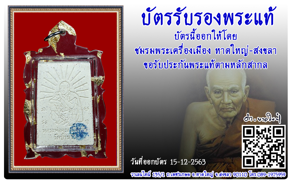 พระสมเด็จ หลวงพ่อคูณ วัดบ้านไร่ พ.ศ.2537 2563 15 ธ.ค. 2020 408 share tweet share ชื่อพระ : พระสมเด็จ ชื่อหลวงพ่อ : หลวงพ่อคูณ ประเภท : รุ่นคูณเจริญทรัพย์ ตะกรุดเงิน 3 ดอก วัด-ปี : วัดบ้านไร่ พ.ศ.2537รหัส : No.32523วันที่ออกบัตร : 15-12-2563