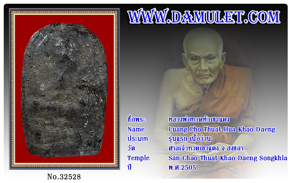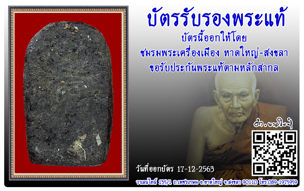 หลวงพ่อทวดหัวเขาแดง ศาลเจ้าทวดเขาแดง จ.สงขลา พ.ศ.2505 2563 17 ธ.ค. 2020 500 share tweet share ชื่อพระ : หลวงพ่อทวดหัวเขาแดงประเภท : รุ่นแรก เนื้อว่านวัด-ปี : ศาลเจ้าทวดเขาแดง จ.สงขลา พ.ศ.2505รหัส : No.32528วันที่ออกบัตร : 17-12-256