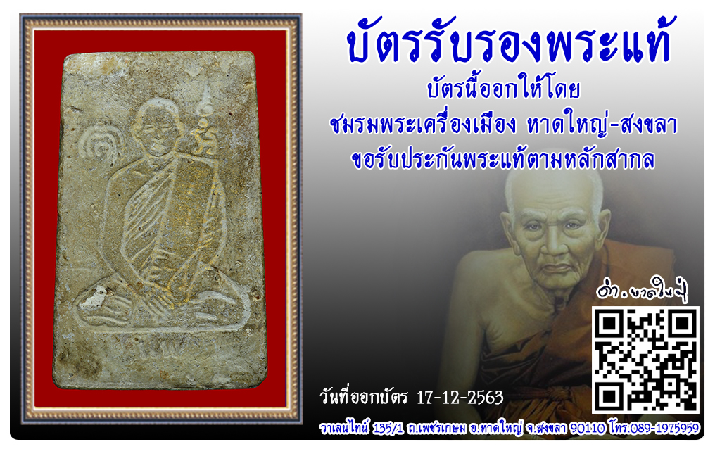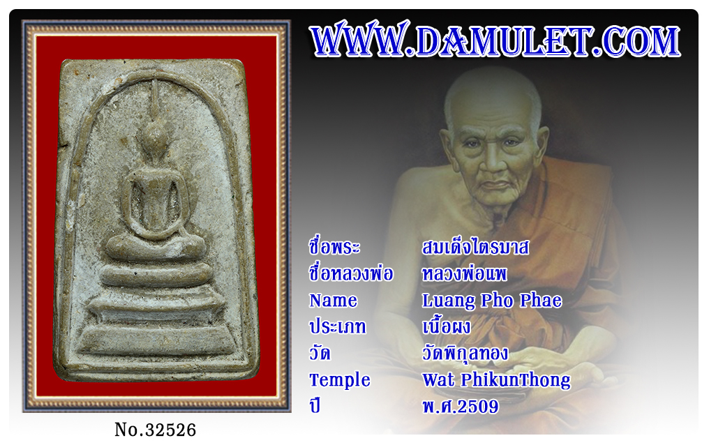 สมเด็จไตรมาส หลวงพ่อแพ วัดพิกุลทอง พ.ศ.2509 2563 17 ธ.ค. 2020 715 share tweet share ชื่อพระ : สมเด็จไตรมาสชื่อหลวงพ่อ : หลวงพ่อแพประเภท : เนื้อผง วัด-ปี : วัดพิกุลทอง พ.ศ.2509รหัส : No.32526วันที่ออกบัตร : 17-12-256
