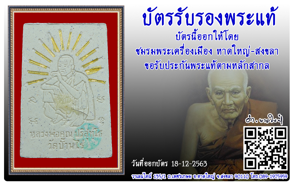 พระสมเด็จ หลวงพ่อคูณ วัดบ้านไร่ พ.ศ.2537 2563 18 ธ.ค. 2020 425 share tweet share ชื่อพระ : พระสมเด็จชื่อหลวงพ่อ : หลวงพ่อคูณประเภท : รุ่นคูณเจริญทรัพย์ เนื้อผง ตะกรุดทอง 19 ดอกวัด-ปี : วัดบ้านไร่ พ.ศ.2537รหัส : No.32529วันที่ออกบัตร : 18-12-2563