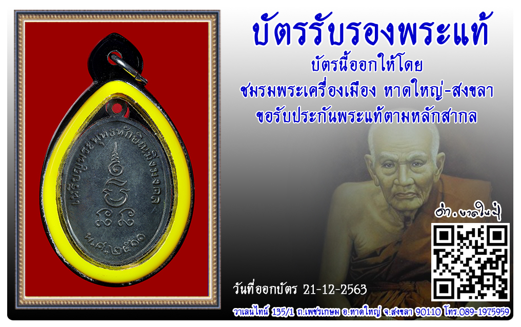 เหรียญพระพุทธทักษิณมิ่งมงคล วัดเขากง พ.ศ.2511 2563 21 ธ.ค. 2020 354 share tweet share ชื่อพระ : เหรียญพระพุทธทักษิณมิ่งมงคลประเภท : รุ่นแรกวัด-ปี : วัดเขากง พ.ศ.2511รหัส : No.32534วันที่ออกบัตร : 21-12-2563