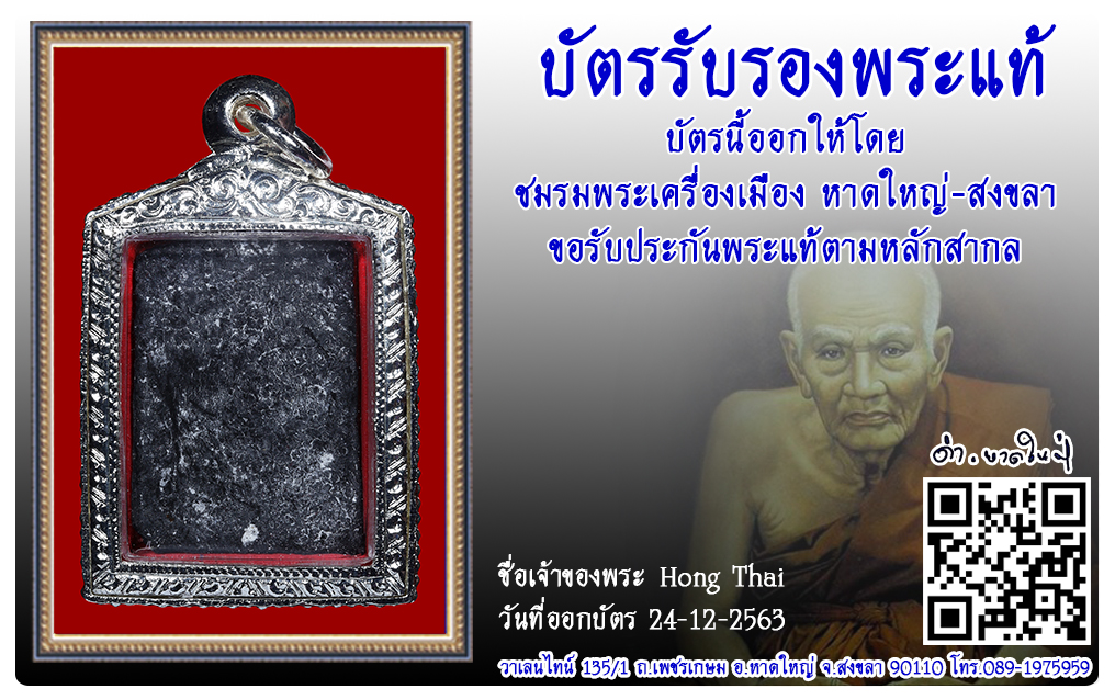 พระสมเด็จรัศมี หลวงปู่ศุข วัดคลองขอม พ.ศ.2456-2460 2563 24 ธ.ค. 2020 369 share tweet share ชื่อพระ : พระสมเด็จรัศมีชื่อหลวงพ่อ : หลวงปู่ศุขประเภท : เนื้อผงใบลานวัด-ปี : วัดคลองขอม พ.ศ.2456-2460รหัส : No.32553วันที่ออกบัตร : 24-12-2563ชื่อเจ้าของพระ : Hong Thai