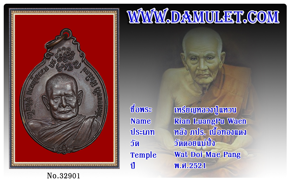 เหรียญหลวงปู่แหวน วัดดอยแม่ปั๋ง พ.ศ.2521 2564 01 ก.พ. 2021 263 share tweet share ชื่อพระ : เหรียญหลวงปู่แหวนประเภท : หลัง ภปร. เนื้อทองแดงวัด-ปี : วัดดอยแม่ปั๋ง พ.ศ.2521รหัส : No.32901ชื่อเจ้าของพระ : TT Heng Amulet
