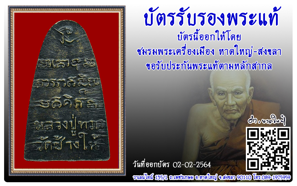 หลวงปู่ทวด วัดช้างให้ พ.ศ.2508 2564 02 ก.พ. 2021 279 share tweet share ชื่อพระ : หลวงปู่ทวดประเภท : แจกปีนัง พิมพ์เล็กวัด-ปี : วัดช้างให้ พ.ศ.2508รหัส : No.32903