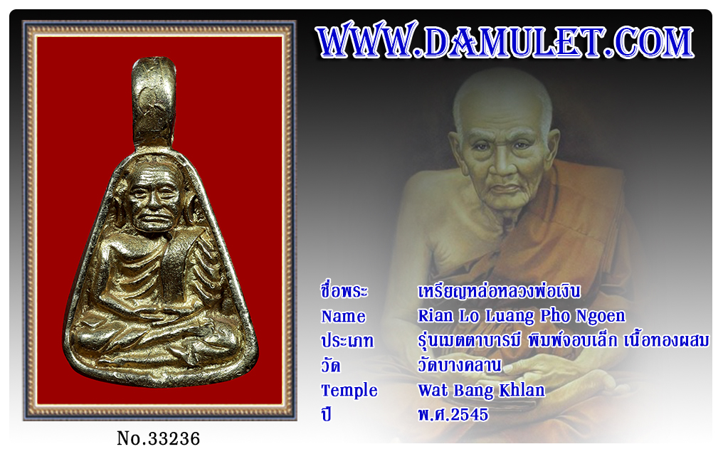 เหรียญหล่อหลวงพ่อเงิน วัดบางคลาน พ.ศ.2545 2564 07 มี.ค. 2021 490 share tweet share ชื่อพระ : เหรียญหล่อหลวงพ่อเงินประเภท : รุ่นเมตตาบารมี พิมพ์จอบเล็ก เนื้อทองผสมวัด-ปี : วัดบางคลาน พ.ศ.2545รหัส : No.33236วันที่ออกบัตร : 07-03-64ชื่อเจ้สของพระ TT Heng Amulet