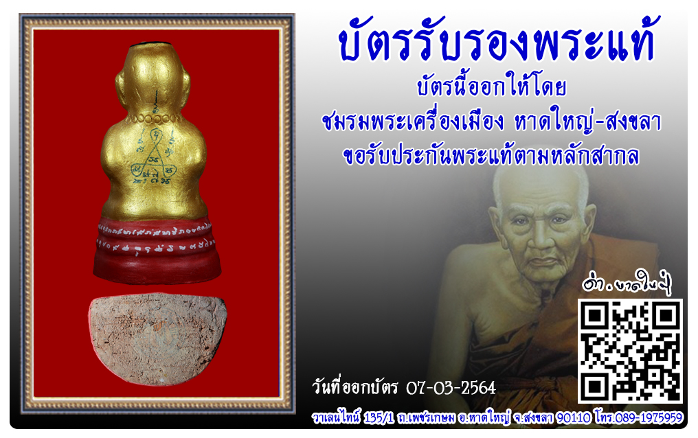 กุมารทอง หลวงปู่แย้ม วัดสามง่าม พ.ศ.2556 2564 07 มี.ค. 2021 339 share tweet share ชื่อพระ : กุมารทองชื่อหลวงพ่อ : หลวงปู่แย้มประเภท : รุ่นเจ้าสัว เนื้อดินเผา ผสมมวลสาร ผงพรายกุมาร ดิน 7 ป่าช้าวัด-ปี : วัดสามง่าม พ.ศ.2556รหัส : No.33241วันที่ออกบัตร : 07-03-64
