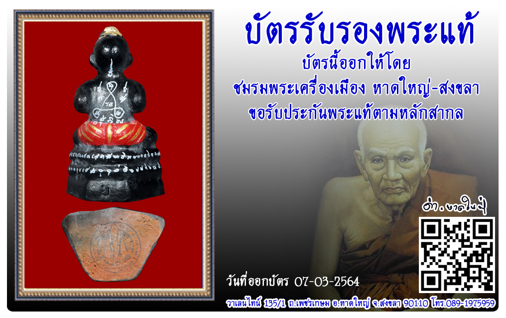 กุมารทอง หลวงปู่แย้ม วัดสามง่าม พ.ศ.2553 2564 07 มี.ค. 2021 388 share tweet share ชื่อพระ : กุมารทองชื่อหลวงพ่อ : หลวงปู่แย้มประเภท : รุ่นเจ้าทรัพย์ เนื้อดินเผา ผสมมวลสาร ผงพรายกุมาร ดิน 7 ป่าช้าวัด-ปี : วัดสามง่าม พ.ศ.2553รหัส : No.33243วันที่ออกบัตร : 07-03-64