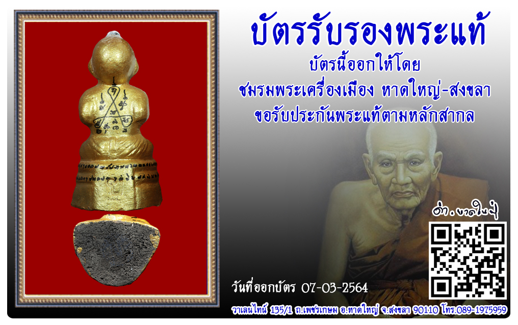 กุมารทอง หลวงปู่แย้ม วัดสามง่าม พ.ศ.2557 2564 07 มี.ค. 2021 288 share tweet share ชื่อพระ : กุมารทองชื่อหลวงพ่อ : หลวงปู่แย้มประเภท : รุ่นสมบูรณ์ทรัพย์ ฐานกระต่าย 100 ปี เนื้อดินเผา ผสมมวลสาร ผงพรายกุมาร ดิน 7 ป่าช้าวัด-ปี : วัดสามง่าม พ.ศ.2557รหัส : No.33244วันที่ออกบัตร : 07-03-64