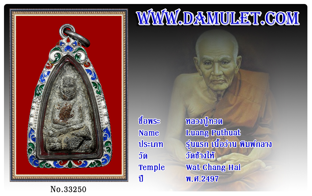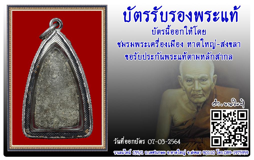 หลวงปู่ทวด วัดช้างให้ พ.ศ.2497 2564 07 มี.ค. 2021 292 share tweet share ชื่อพระ : หลวงปู่ทวดประเภท : รุ่นแรก เนื้อว่าน พิมพ์กลางวัด-ปี : วัดช้างให้ พ.ศ.2497รหัส : No.33250วันที่ออกบัตร : 07-03-64