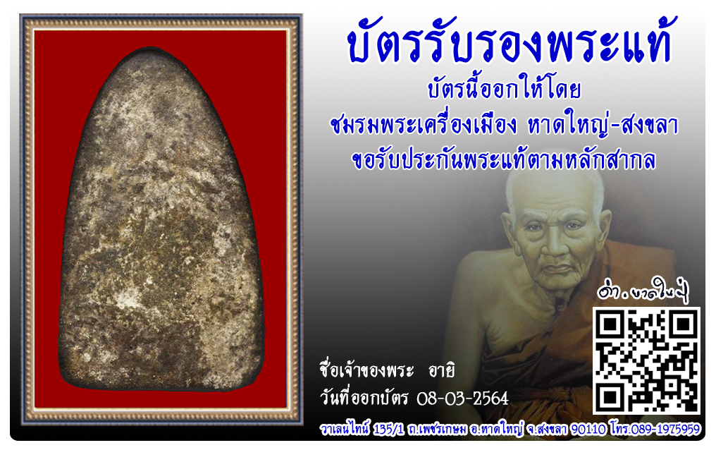 หลวงปู่ทวด วัดช้างให้ พ.ศ.2497 2564 08 มี.ค. 2021 442 share tweet share ชื่อพระ : หลวงปู่ทวดประเภท : รุ่นแรก เนื้อว่าน พิมพ์ใหญ่วัด-ปี : วัดช้างให้ พ.ศ.2497รหัส : No.33256วันที่ออกบัตร : 08-03-64ชื่อเจ้าของพระ : อายิ