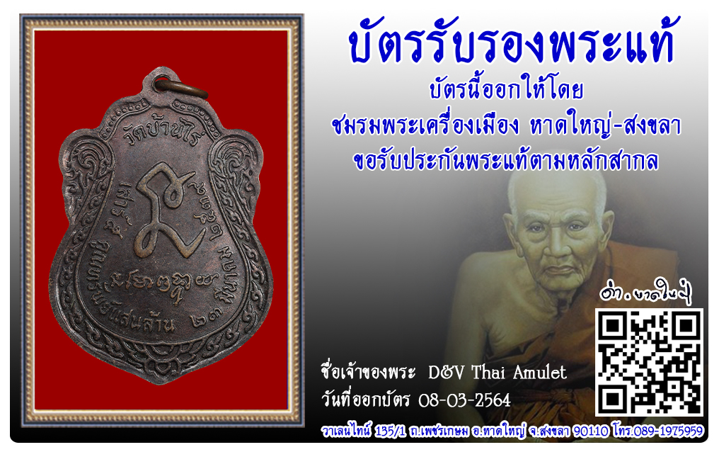 เหรียญหลวงพ่อคูณ วัดบ้านไร่ พ.ศ.2539 2564 08 มี.ค. 2021 299 share tweet share ชื่อพระ : เหรียญหลวงพ่อคูณประเภท : รุ่นคูณทรัพย์แสนล้าน เนื้อทองแดงวัด-ปี : วัดบ้านไร่ พ.ศ.2539รหัส : No.33257วันที่ออกบัตร : 08-03-64ชื่อเจ้าของพระ : D&V Thai Amulet