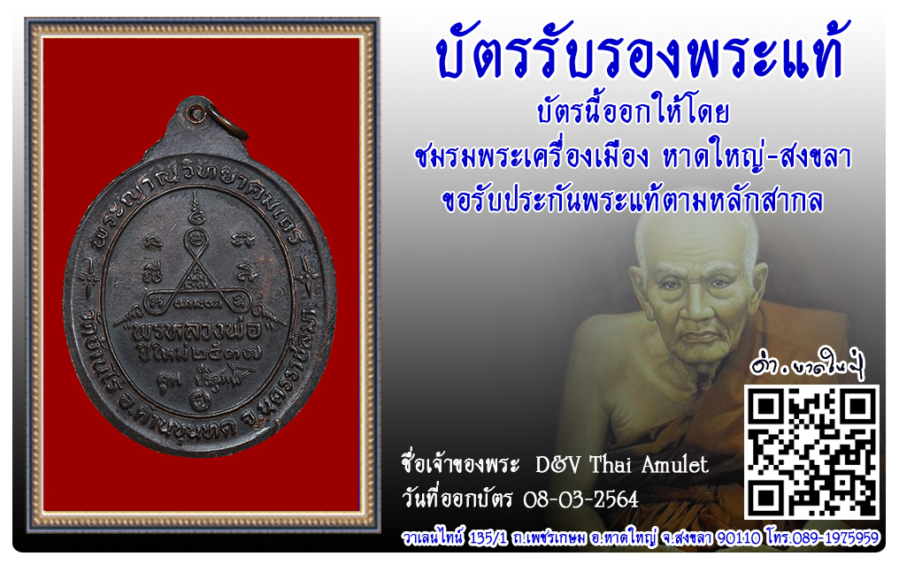 เหรียญหลวงพ่อคูณ วัดบ้านไร่ พ.ศ.2537 2564 08 มี.ค. 2021 278 share tweet share ชื่อพระ : เหรียญหลวงพ่อคูณประเภท : รุ่นพรหลวงพ่อปีใหม่ เนื้อทองแดงวัด-ปี : วัดบ้านไร่ พ.ศ.2537รหัส : No.33259วันที่ออกบัตร : 08-03-64ชื่อเจ้าของพระ : D&V Thai Amulet