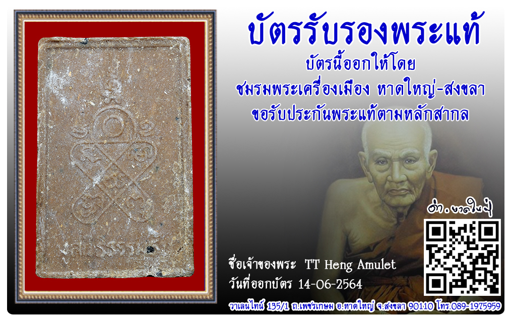 พระผงพิชิตมาร ออกวัดท่าเกวียน พ.ศ.2514 2564 15 มิ.ย. 2021 218 share tweet share ชื่อพระ : พระผงพิชิตมารชื่อหลวงพ่อ : หลวงปู่ทิม ปลุกเสกวัด-ปี : ออกวัดท่าเกวียน พ.ศ.2514รหัส : No.34857วันที่ออกบัตร : 14-06-64ชื่อเจ้าของพระ : TT Heng Amulet