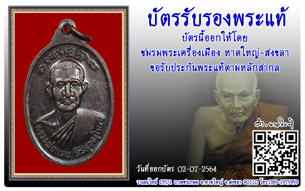 เหรียญพระประจำวันเสาร์ หลวงพ่อแดง วัดถนนสุวรรณประดิษฐ์ จ.สุราษฎร์ธานี 2564 03 ก.ค. 2021 960 share tweet share ชื่อพระ : เหรียญพระประจำวันเสาร์ชื่อหลวงพ่อ : หลวงพ่อแดงประเภท : เนื้อทองแดงวัด-ปี : วัดถนนสุวรรณประดิษฐ์ จ.สุราษฎร์ธานีรหัส : No.35711วันที่ออกบัตร : 02-07-64