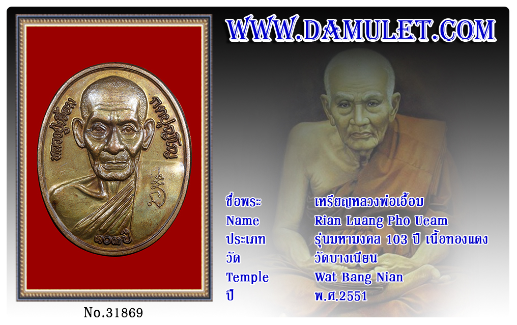 เหรียญหลวงพ่อเอื้อม วัดบางเนียน พ.ศ.2551 2563 23 ก.ค. 2021 298 share tweet share ชื่อพระ : เหรียญหลวงพ่อเอื้อมประเภท : รุ่นมหามงคล อายุ 103 ปี เนื้อทองแดงวัด-ปี : วัดบางเนียน พ.ศ.2551รหัส : No.31869วันที่ออกบัตร : 13-09-63ชื่อเจ้าของพระ : อายิ