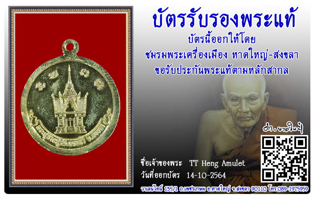 เหรียญหลวงพ่อพระสามองค์ ศาลหลักเมืองสงขลา พ.ศ.2551 2564 09 ธ.ค. 2021 374 share tweet share ชื่อพระ : เหรียญหลวงพ่อพระสามองค์ประเภท : เนื้อทองฝาบาตรวัด-ปี : ศาลหลักเมืองสงขลารหัส : No.38510 พ.ศ.2551วันที่ออกบัตร : 14-10-64ชื่อเจ้าของพระ : TT Heng Amulet