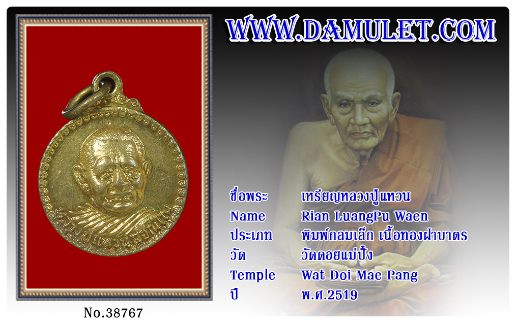เหรียญหลวงปู่แหวน วัดดอยแม่ปั๋ง พ.ศ.2519 2564 09 ธ.ค. 2021 382 share tweet share ชื่อพระ : เหรียญหลวงปู่แหวนประเภท : พิมพ์กลมเล็ก เนื้อทองฝาบาตรวัด-ปี : วัดดอยแม่ปั๋ง พ.ศ.2519รหัส : No.38767วันที่ออกบัตร : 26-10-64ชื่อเจ้าของพระ : TT Heng Amulet