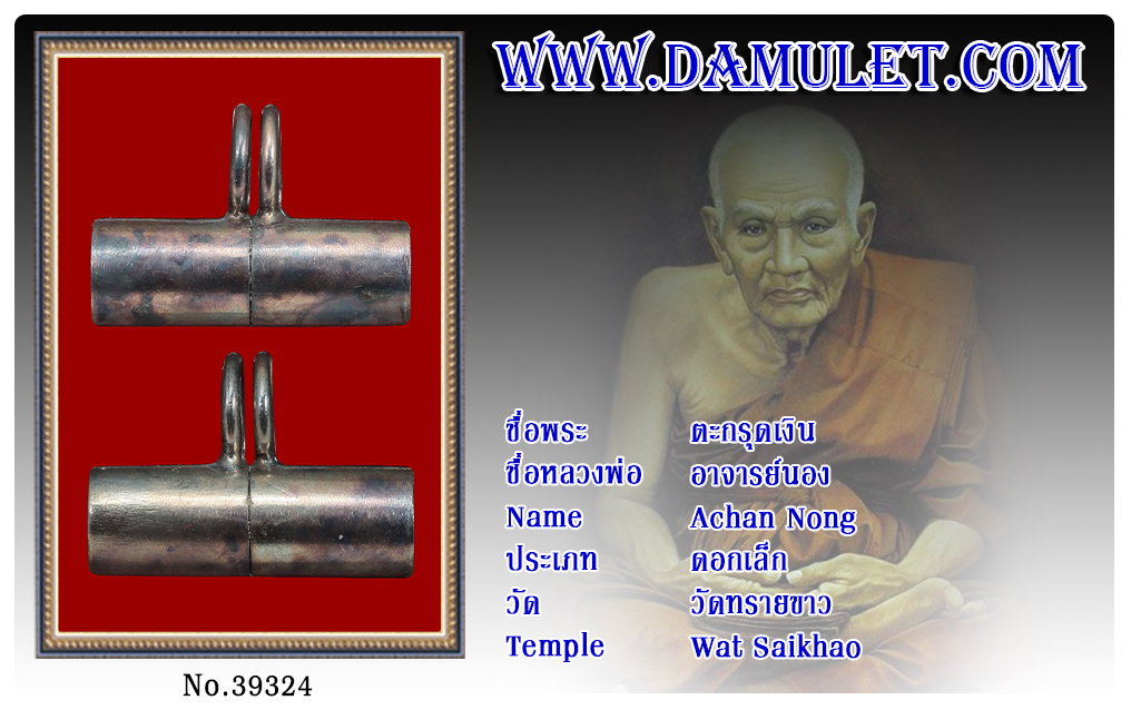 ตะกรุดเงิน อาจารย์นอง วัดทรายขาว 2564 28 ธ.ค. 2021 270 share tweet share ชื่อพระ : ตะกรุดเงินชื่อหลวงพ่อ : อาจารย์นองประเภท : ดอกเล็กวัด-ปี : วัดทรายขาวรหัส : No.39324