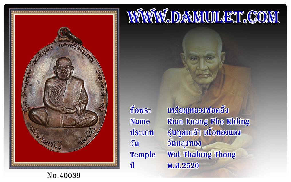 ชื่อพระ : เหรียญหลวงพ่อคลิ้ง