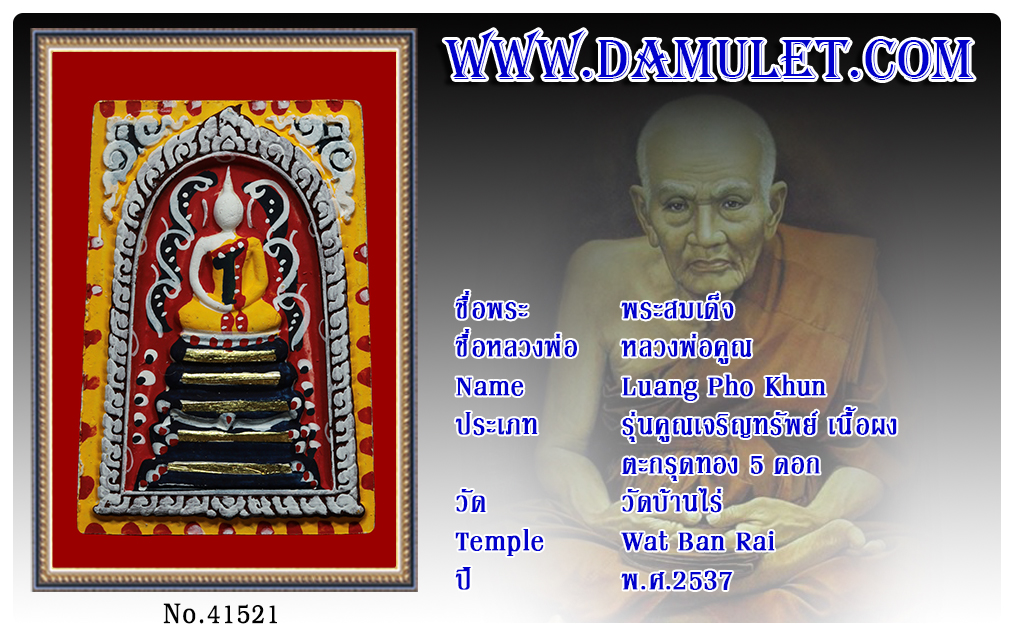 ประเภท : รุ่นคูณเจริญทรัพย์ เนื้อผง ตะกรุดทอง 5 ดอก