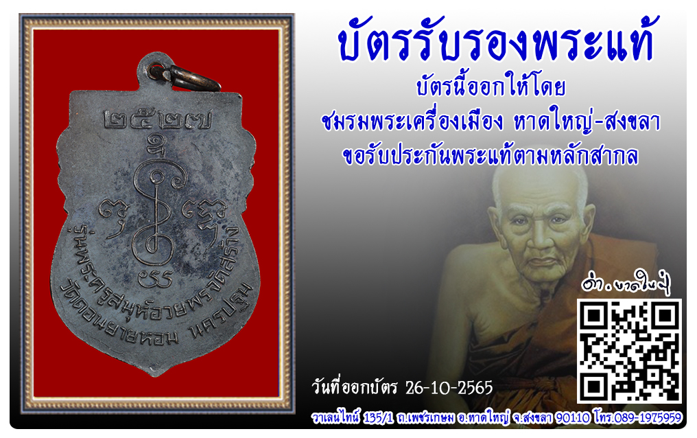 ประเภท : พระครูสมุห์อวยพร จัดสร้าง เนื้อทองแดง