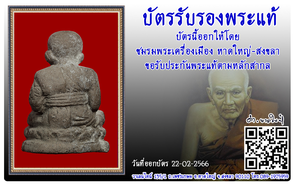 หลวงปู่ทวด วัดสะบ้าย้อย พ.ศ.2539 บัตรรับรองพระแท้ 23 ก.พ. 2023 193 share tweet share ชื่อพระ : หลวงปู่ทวดประเภท : รุ่นเสินเจิ้น เนื้อว่านวัด : วัดสะบ้าย้อย พ.ศ.2539รหัส : No.42545วันที่ออกบัตร : 22-02-2566