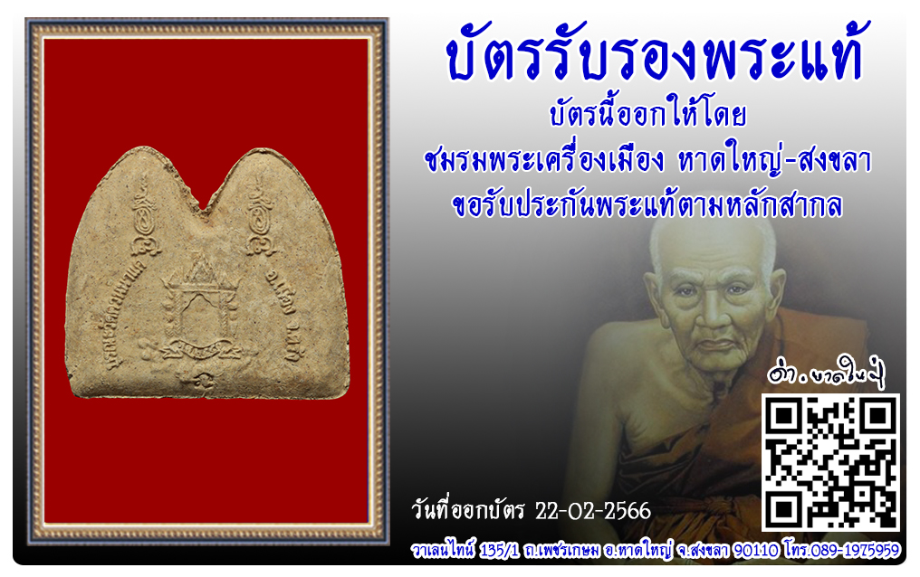 พระขุนแผนพรายคู่ วัดควนนาแค พ.ศ.2550 บัตรรับรองพระแท้ 23 ก.พ. 2023 216 share tweet share ชื่อพระ : พระขุนแผนพรายคู่ประเภท : รุ่น 2 เนื้อว่านวัด : วัดควนนาแค พ.ศ.2550รหัส : No.42549วันที่ออกบัตร : 22-02-2566