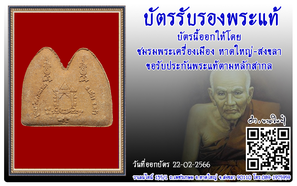 พระขุนแผนพรายคู่ วัดควนนาแค พ.ศ.2550 บัตรรับรองพระแท้ 23 ก.พ. 2023 240 share tweet share ชื่อพระ : พระขุนแผนพรายคู่ประเภท : รุ่น 2 เนื้อว่านวัด : วัดควนนาแค พ.ศ.2550รหัส : No.42550วันที่ออกบัตร : 22-02-2566