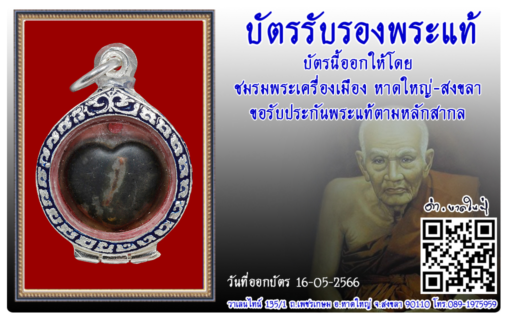สีผึ้ง หลวงพ่อทาบ วัดกระบกขึ้นผึ้ง จ.ระยอง พ.ศ.2505 บัตรรับรองพระแท้ 17 พ.ค. 2023 179 share tweet share ชื่อพระ : สีผึ้งชื่อหลวงพ่อ : หลวงพ่อทาบวัด : วัดกระบกขึ้นผึ้ง จ.ระยอง พ.ศ.2505รหัส : No.43317วันที่ออกบัตร : 16-05-2566