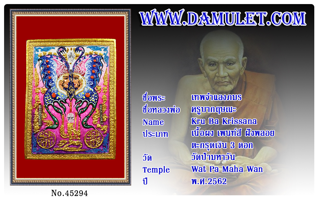 ประเภท : เนื้อผง เพนท์สี ฝังพลอย ตะกรุดเงิน 3 ดอก