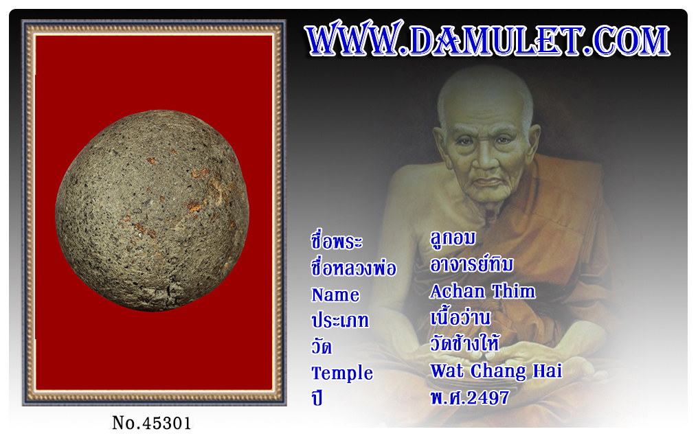 ชื่อหลวงพ่อ : อาจารย์ทิม