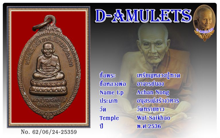 เหรียญหลวงปู่ทวด อาจารย์นอง วัดทรายขาว พ.ศ.2536