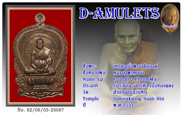 เหรียญนั่งพานเต็มองค์ หลวงปู่พรหมมา สำนักสงฆ์สวนหิน พ.ศ.2537