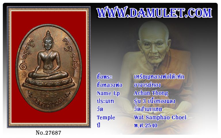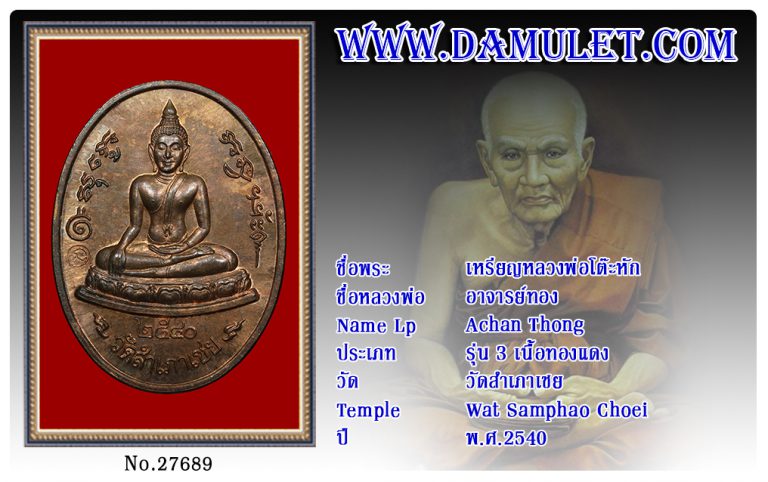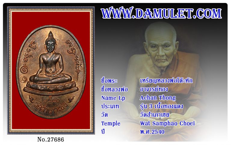 เหรียญหลวงพ่อโต๊ะหัก อาจารย์ทอง วัดสำเภาเชย พ.ศ.2540