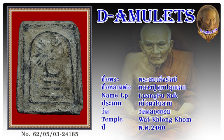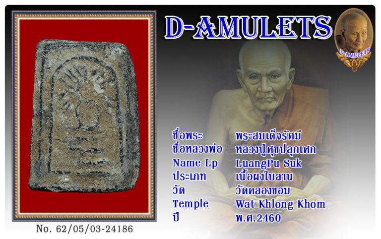 พระสมเด็จรัสมี หลวงปู่ศุข ปลุกเสก วัดคลองขอม พ.ศ.2460