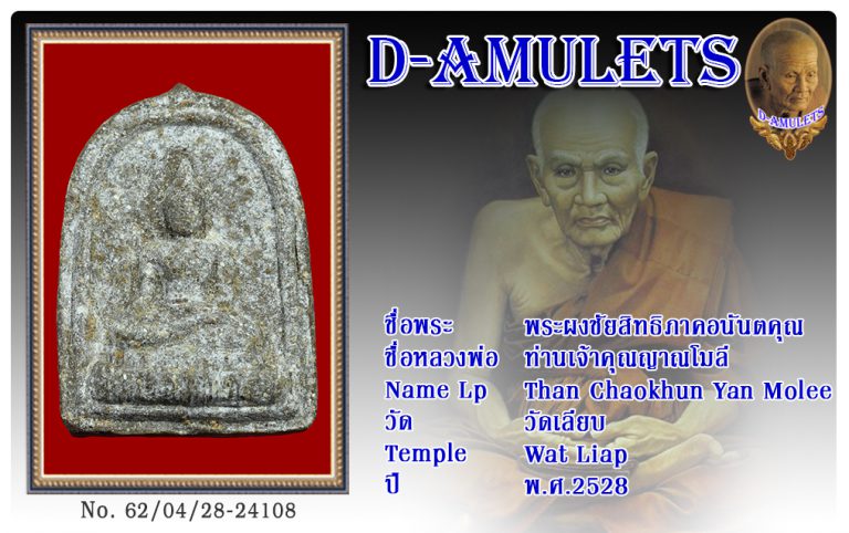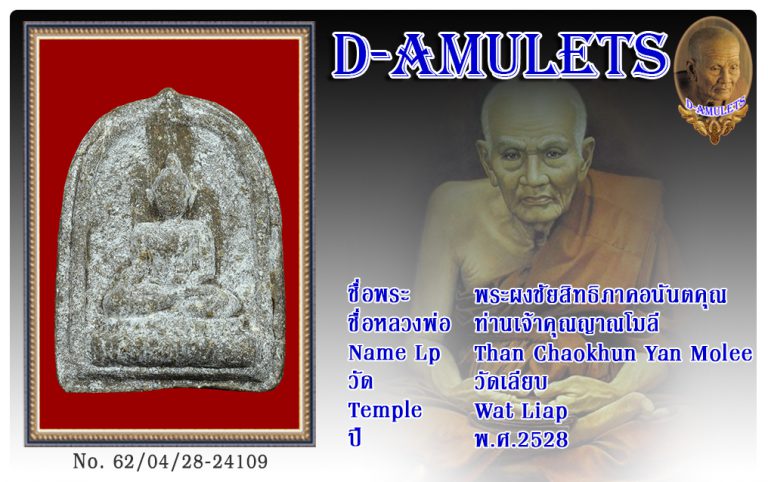 พระผงชัยสิทธิภาคอนันตคุณ ท่านเจ้าคุณญาณโมลี วัดเลียบ พ.ศ.2528