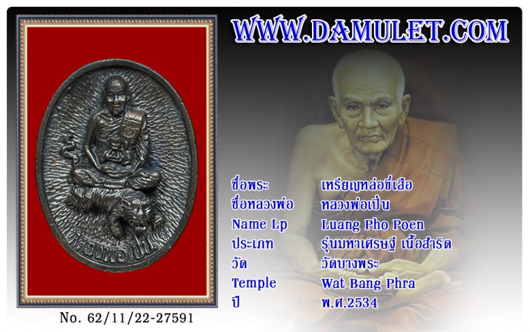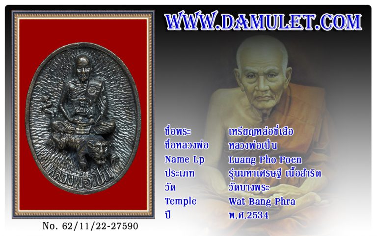 เหรียญหล่อขี่เสือ หลวงพ่อเปิ่น วัดบางพระ พ.ศ.2534