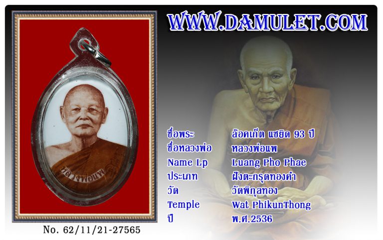 ล๊อคเก็ตแซยิด 93 ปี หลวงพ่อแพ วัดพิกุลทอง พ.ศ.2539