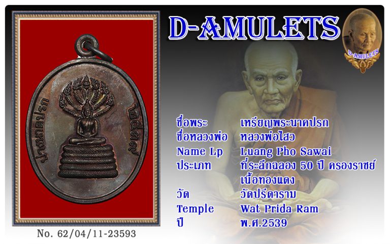 เหรียญพระนาคปรก หลวงพ่อไสว วัดปรีดาราม พ.ศ.2539