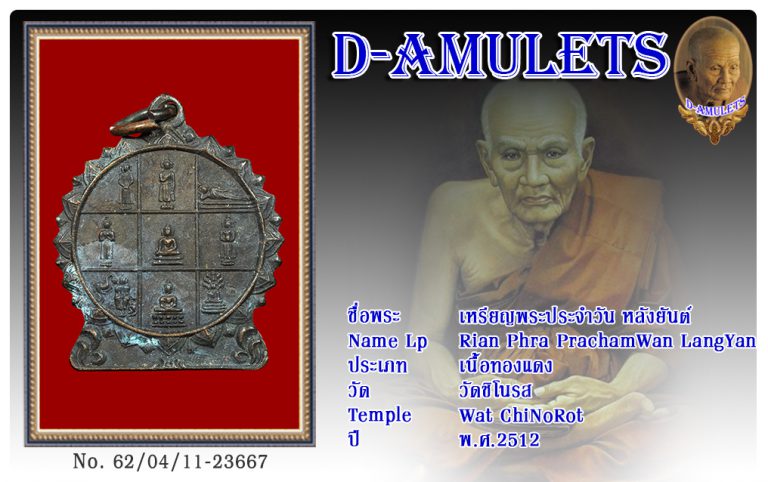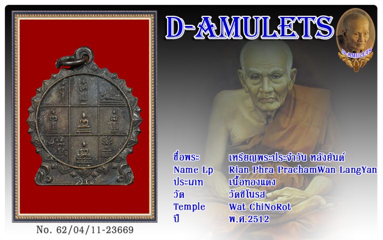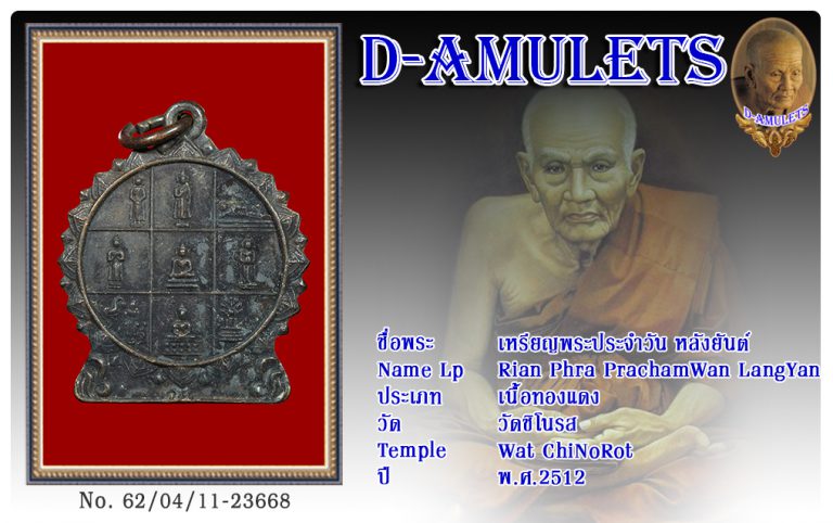เหรียญพระประจำวัน หลังยันต์ วัดชิโนรส พ.ศ.2512