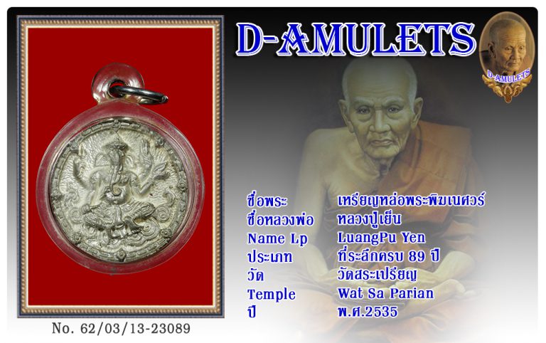 เหรียญหล่อพระพิฆเนศวร์ หลวงปู่เย็น วัดสระเปรียญ พ.ศ.2535
