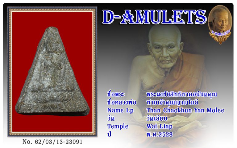 พระผงชัยสิทธิภาคอนันตคุณ ท่านเจ้าคุณญาณโมลี วัดเลียบ พ.ศ.2528