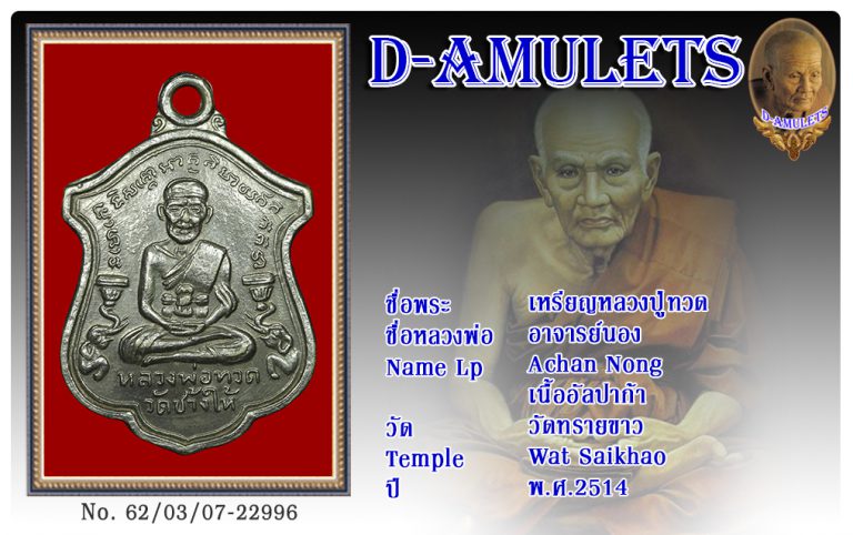 เหรียญหลวงปู่ทวด อาจารย์นอง วัดทรายขาว พ.ศ.2539